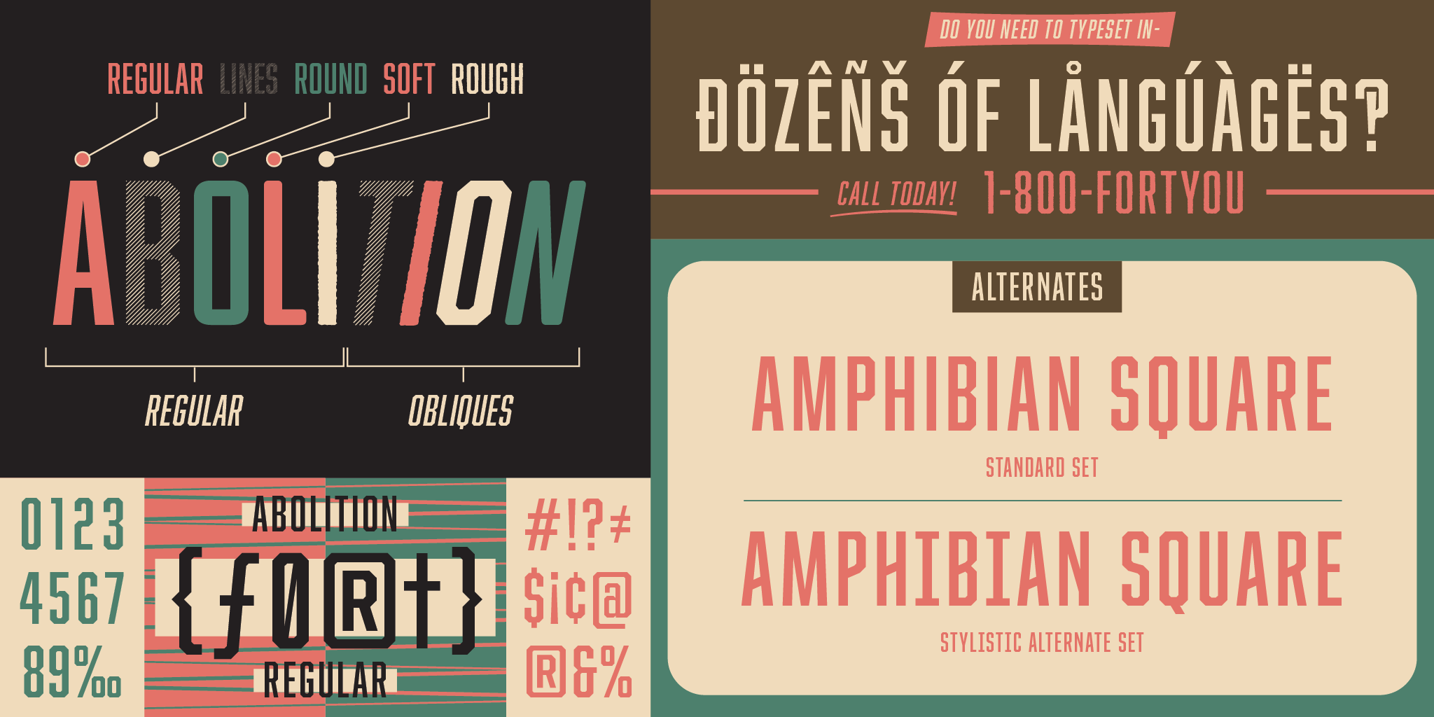 It's a highly modified sans-serif version of Bourbon that comes with some a few surprises of its own. The typeface underwent an extensive revision in 2013. Features include stylistic alternates and multiple language support.