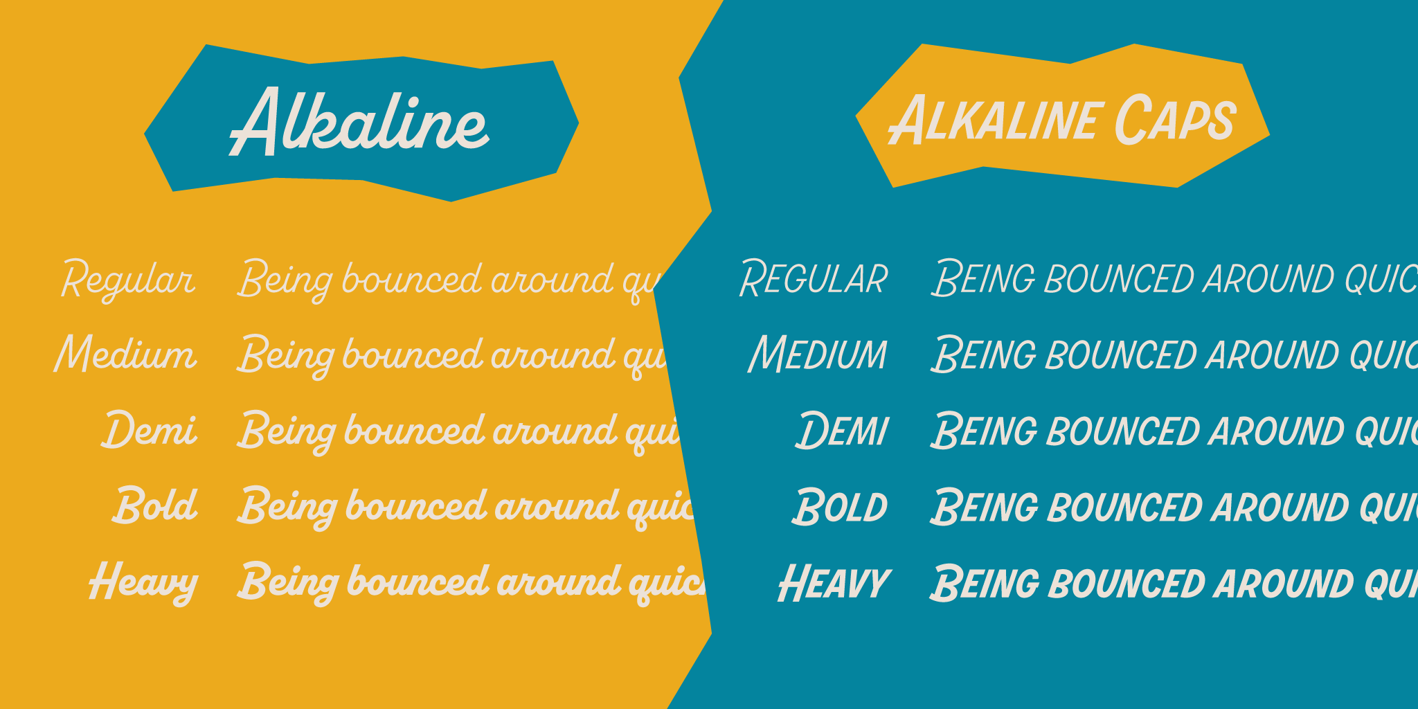 Ever since seeing his knack for lettering, Fort has been crazy about the fun and flair Jonathan Ball puts into his work. We reached out years back and began developing a script together with the goal of making it as fun, yet functional as possible. Inspired by mid-century lettering and logos on kitchen appliances, Alkaline is packed with fully functional ligatures, international language support, stylistic and contextual alternates, and even an all caps version. With a clubby camber of 18°, Alkaline is ready for all kinds of good times!