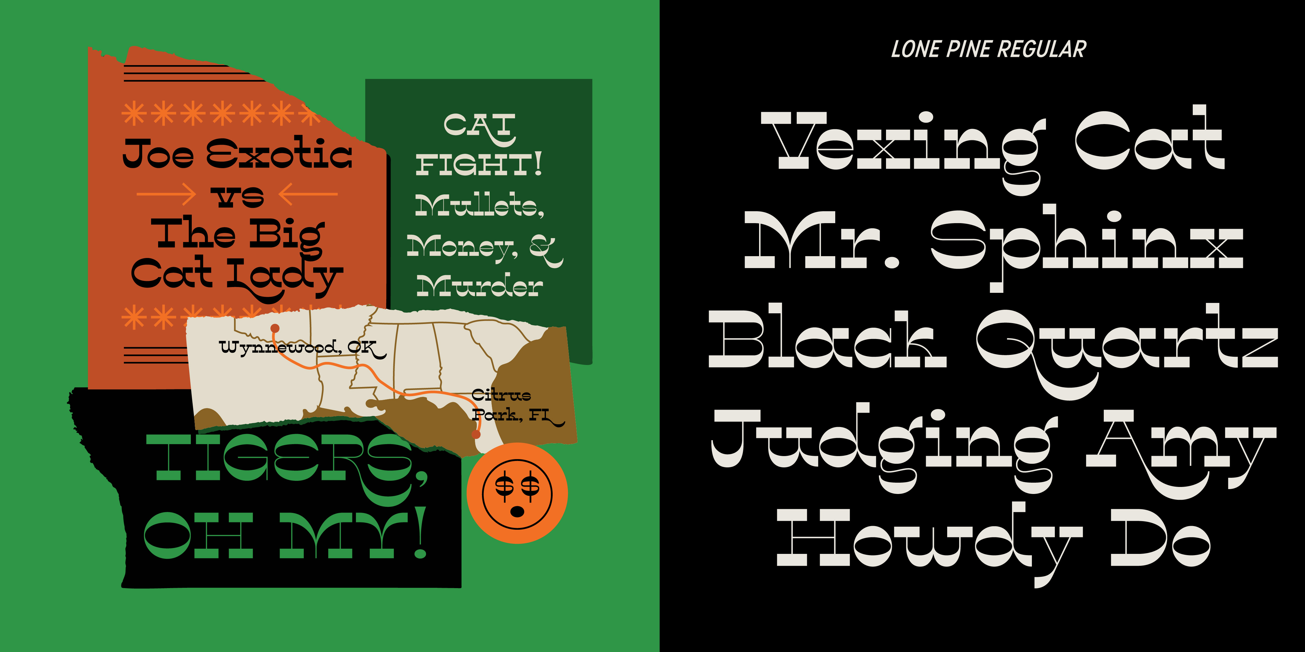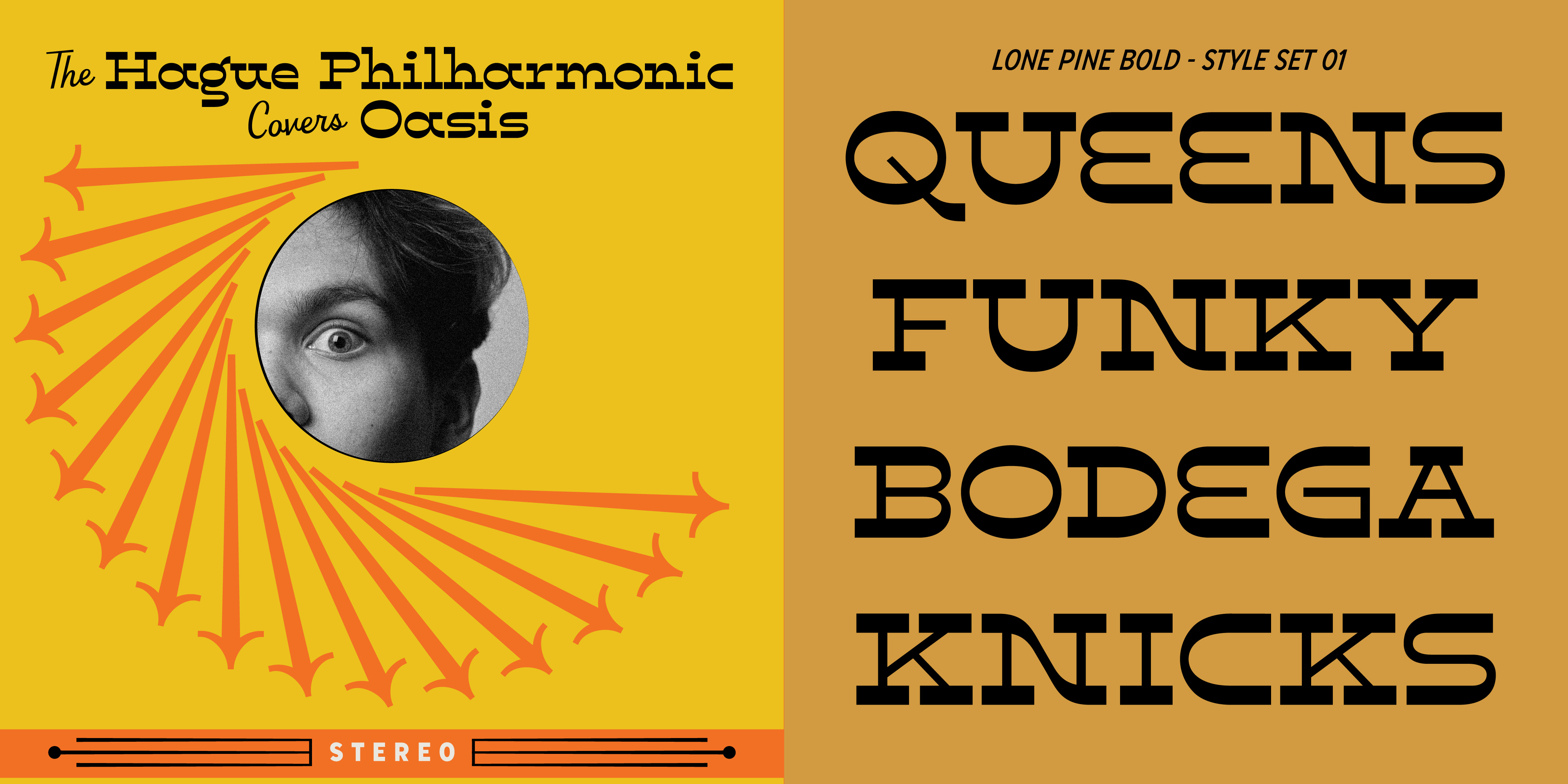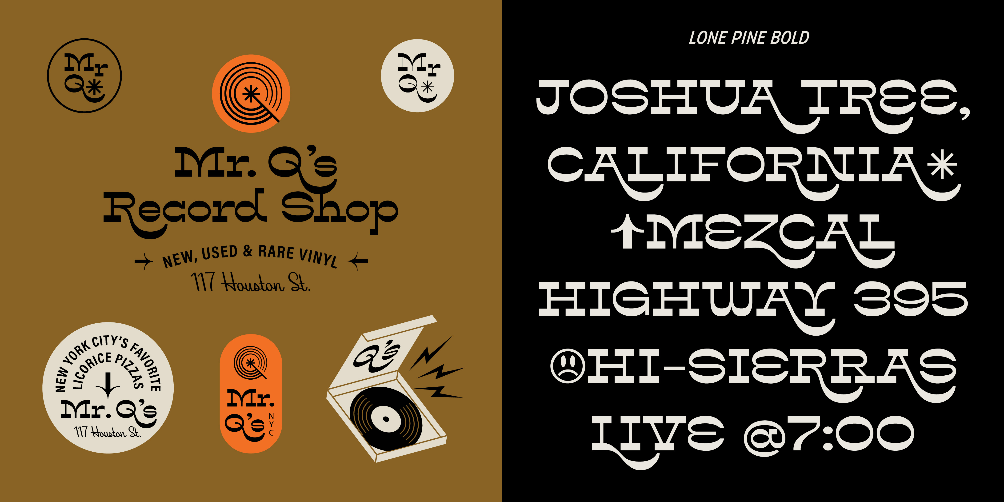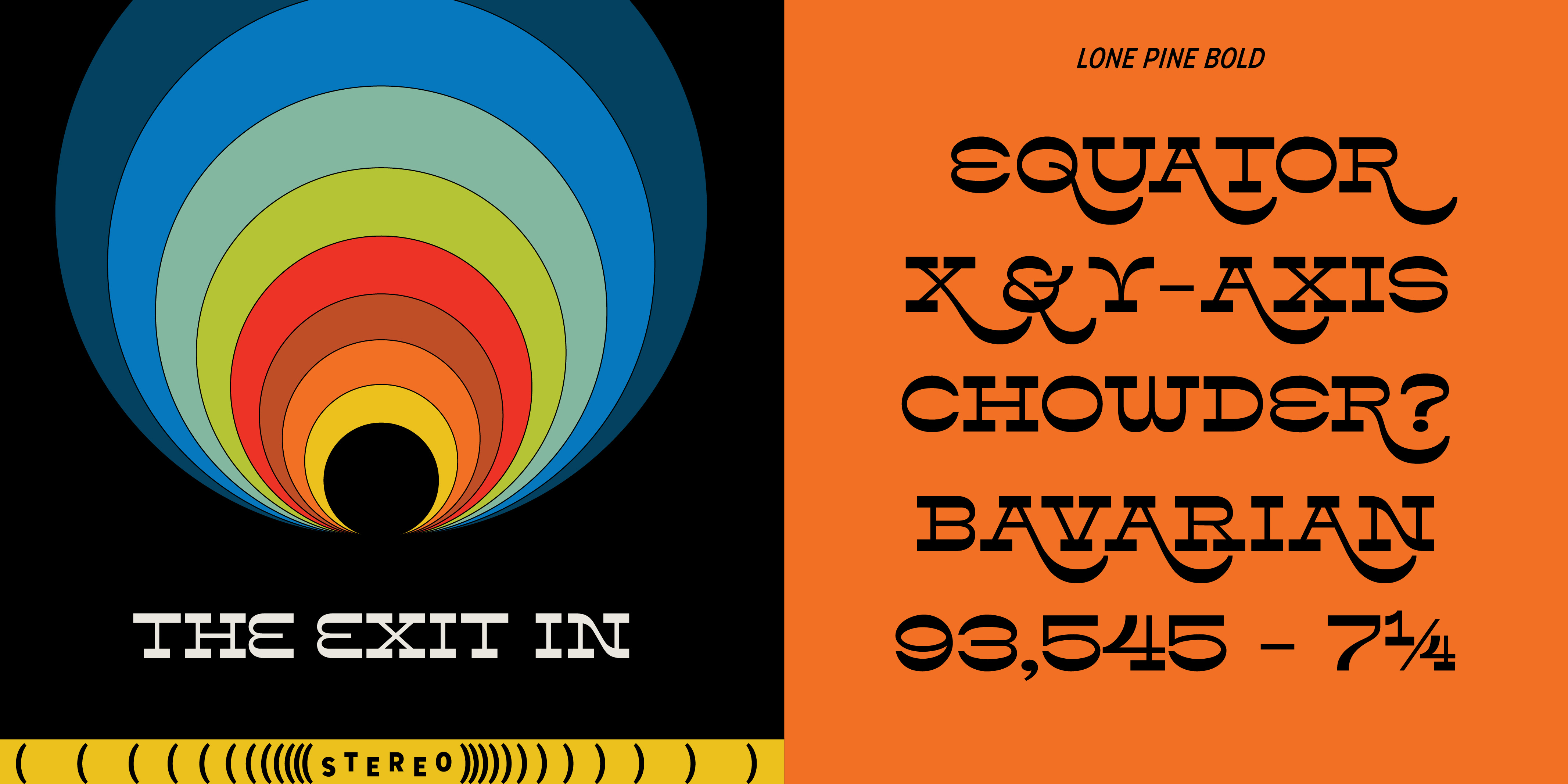 Lone Pine font by Hoodzpah is a reverse contrast serif typeface with 110% zazz and juuj. It’s inspired by Route 395 in California, which runs along the Eastern Sierra Nevadas; And by the many towns scattered along the way, namely Lone Pine, CA at the base of Mt. Whitney. This display font is super high contrast, and features big swashes for immediate wow factor. Turn on style set 01 for a more 70’s sci-fi look.