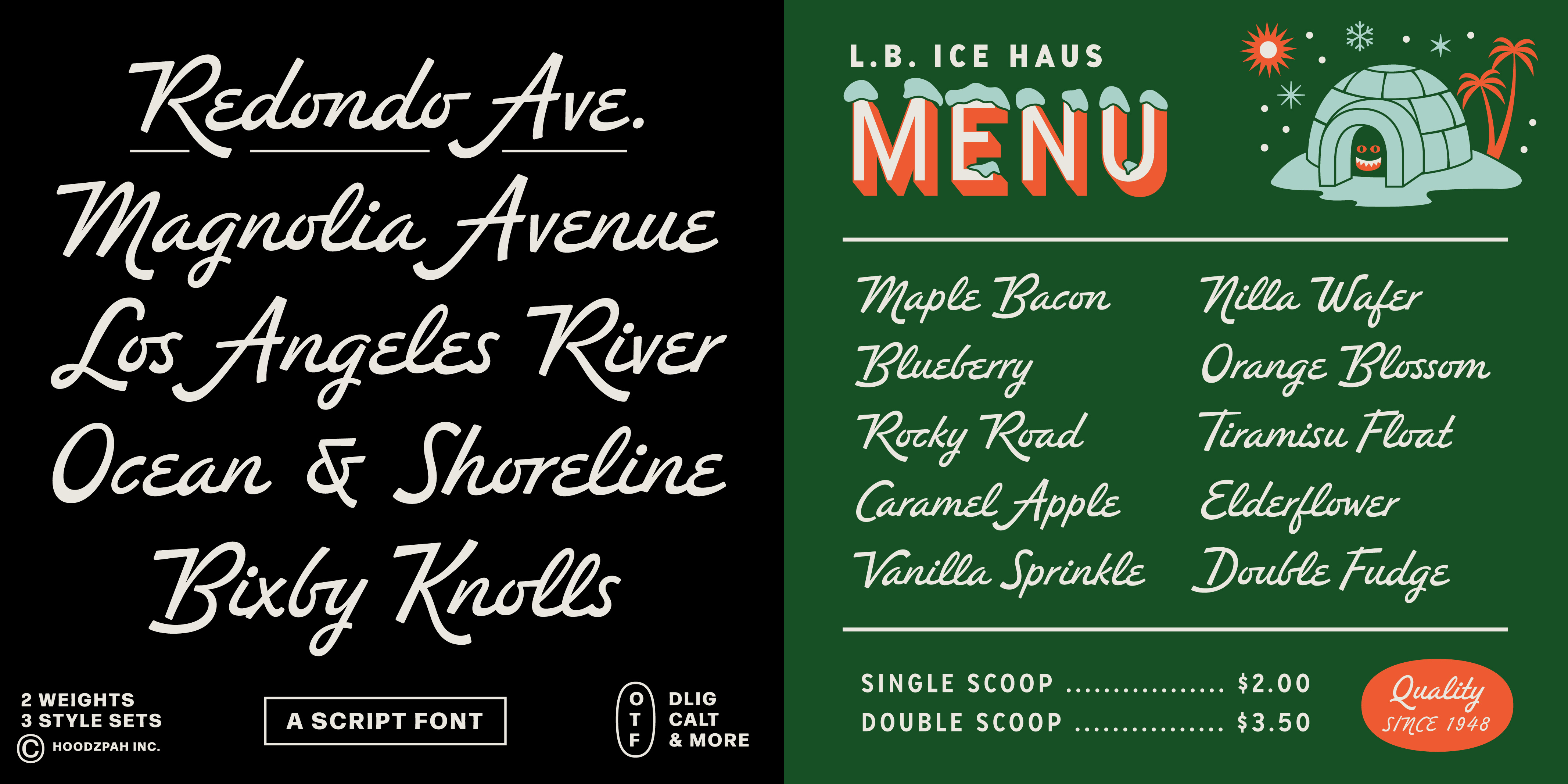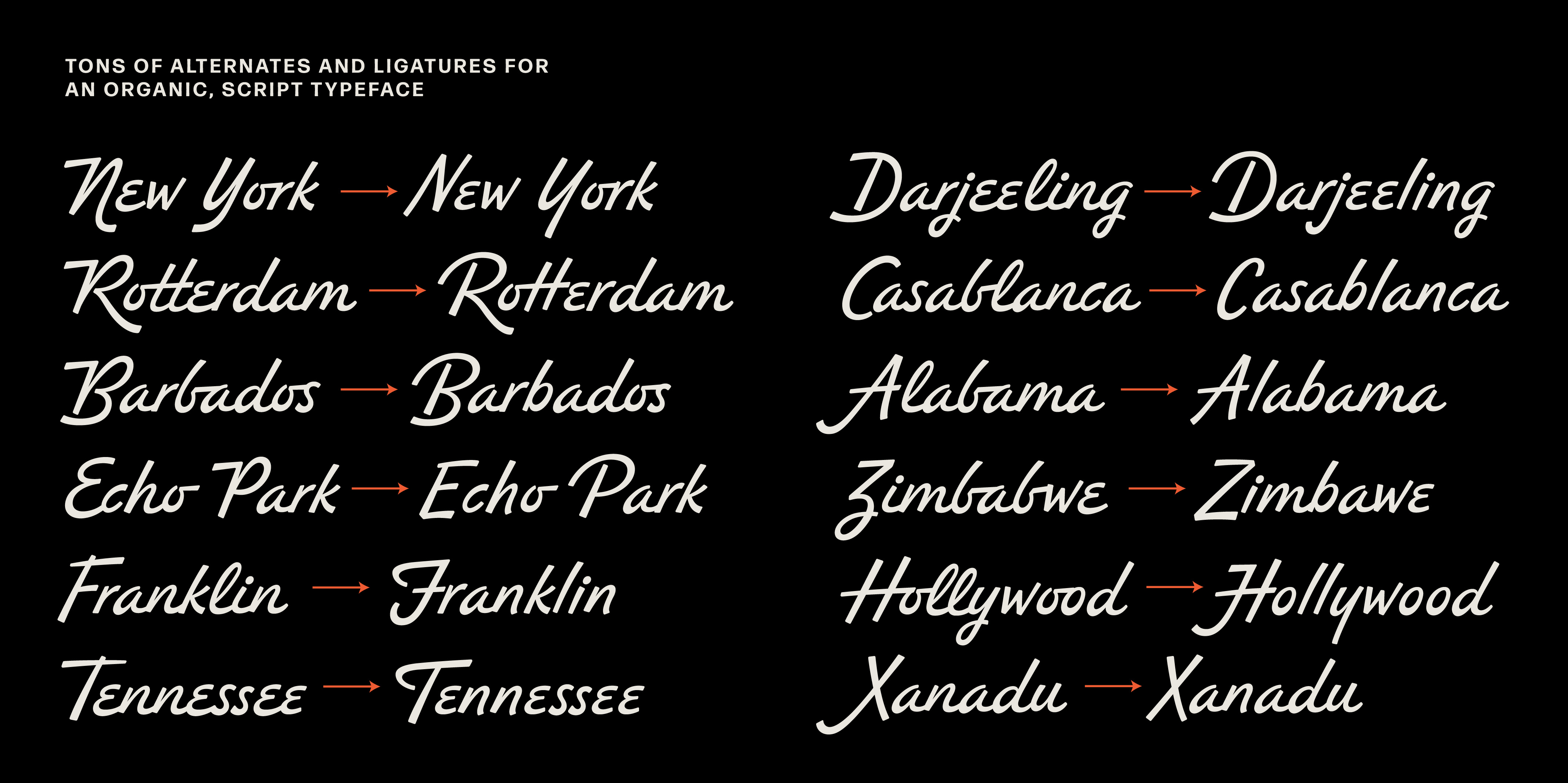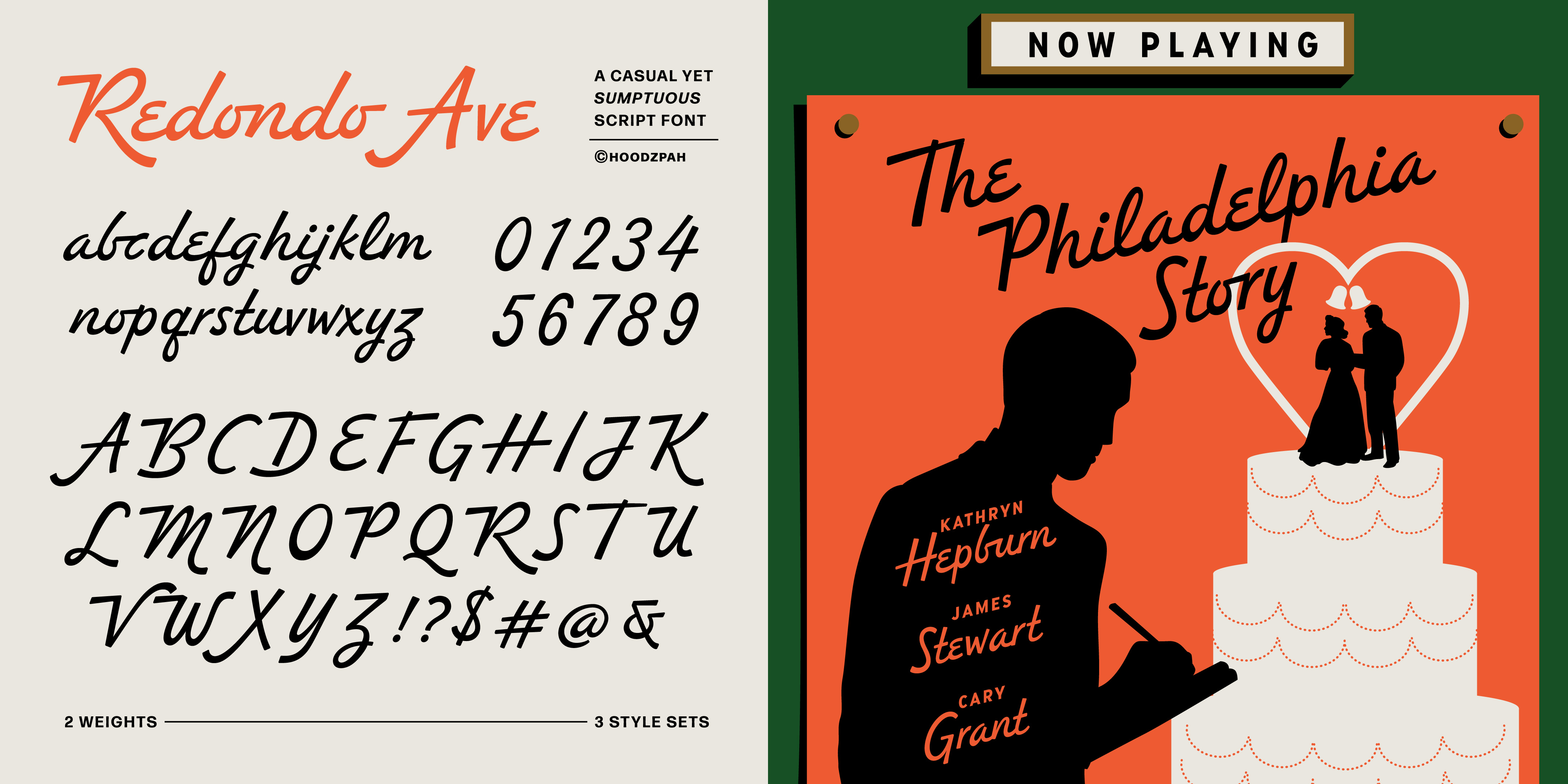 Redondo Ave comes in 2 weights, with 560 glyphs supporting most Latin-based languages. This script font also features tons of alternate characters and style sets for a truly organic feel. This display font adds instant personality to any design or layout. Like Jennifer Coolidge, it has an extravagance that’s simultaneously relatable and down to earth.