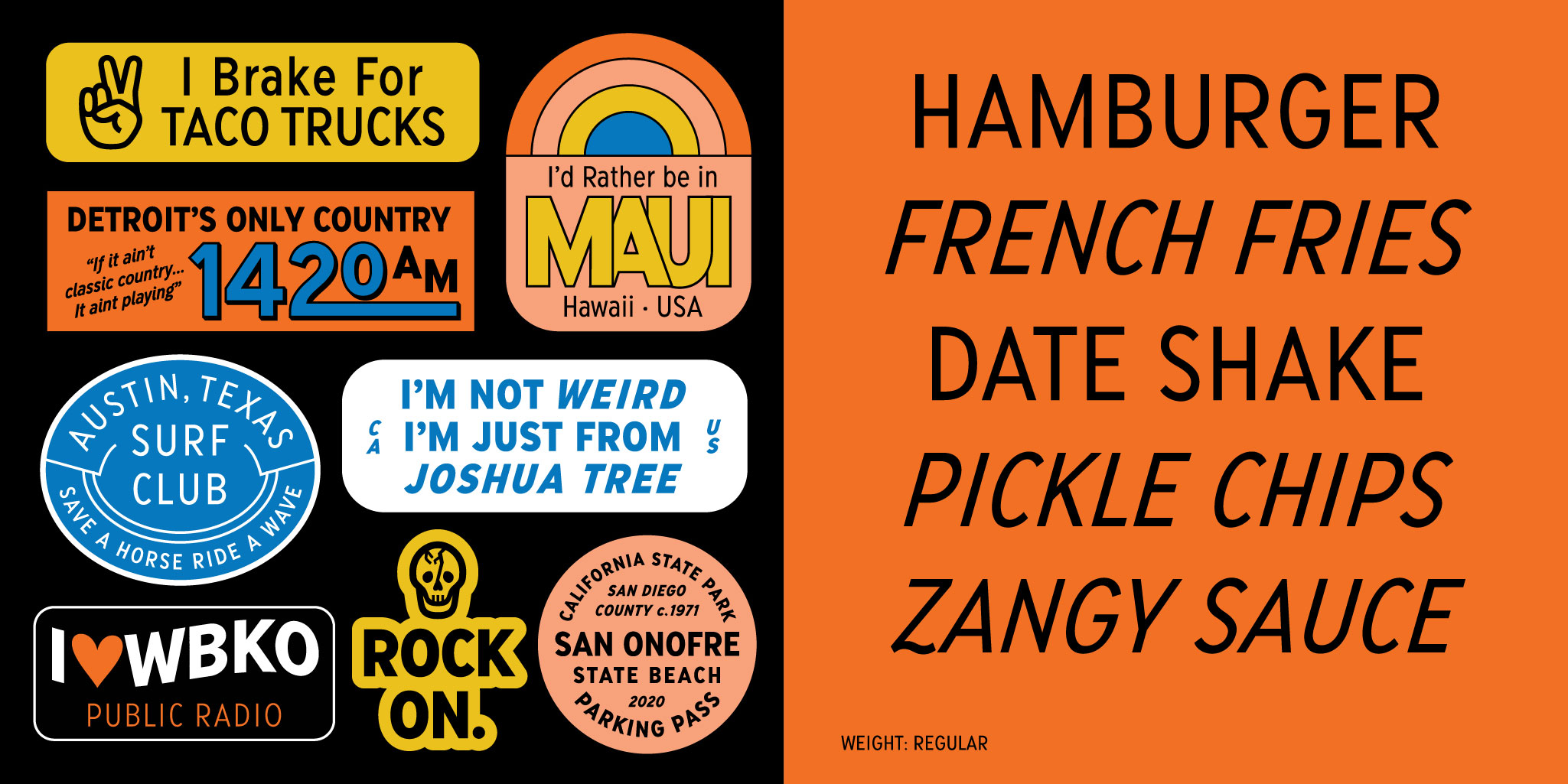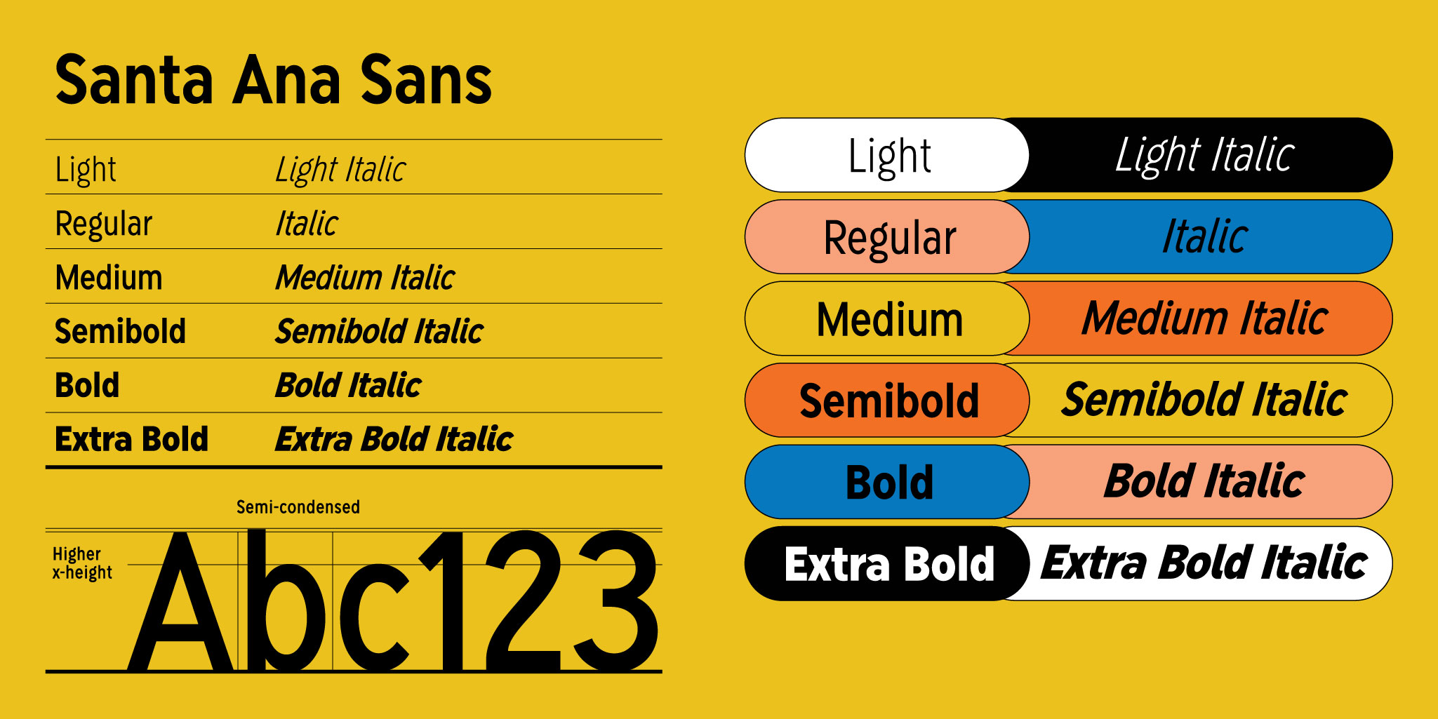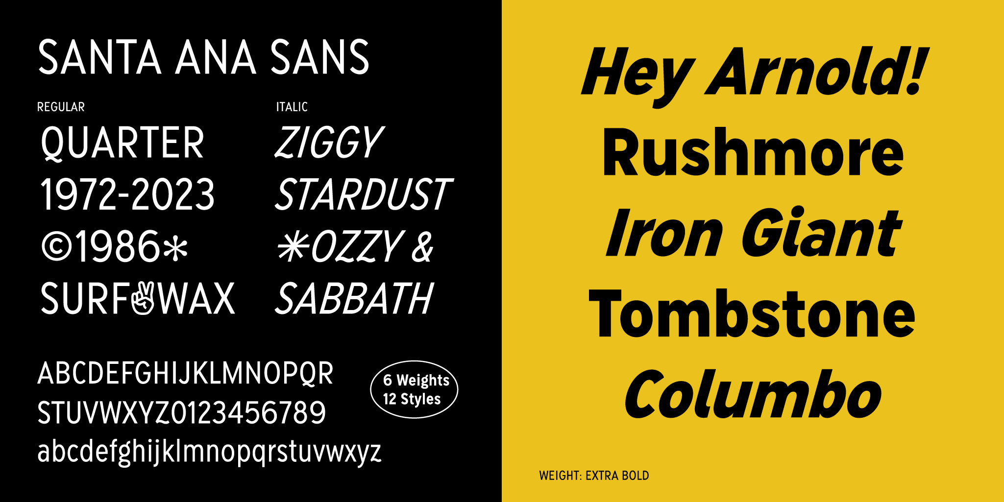 Santa Ana Sans is inspired by the perfectly imperfect typography on vintage and retro storefront signage and marquees. This semi-condensed typeface comes in 6 weights plus italics. It’s a workhorse typeface that you can set heavier text in, but don’t get it wrong, it knows how to play just as hard and has enough personality for headline copy, logos, and other display usages. Track it tight, track it wide…versatility is its middle name.