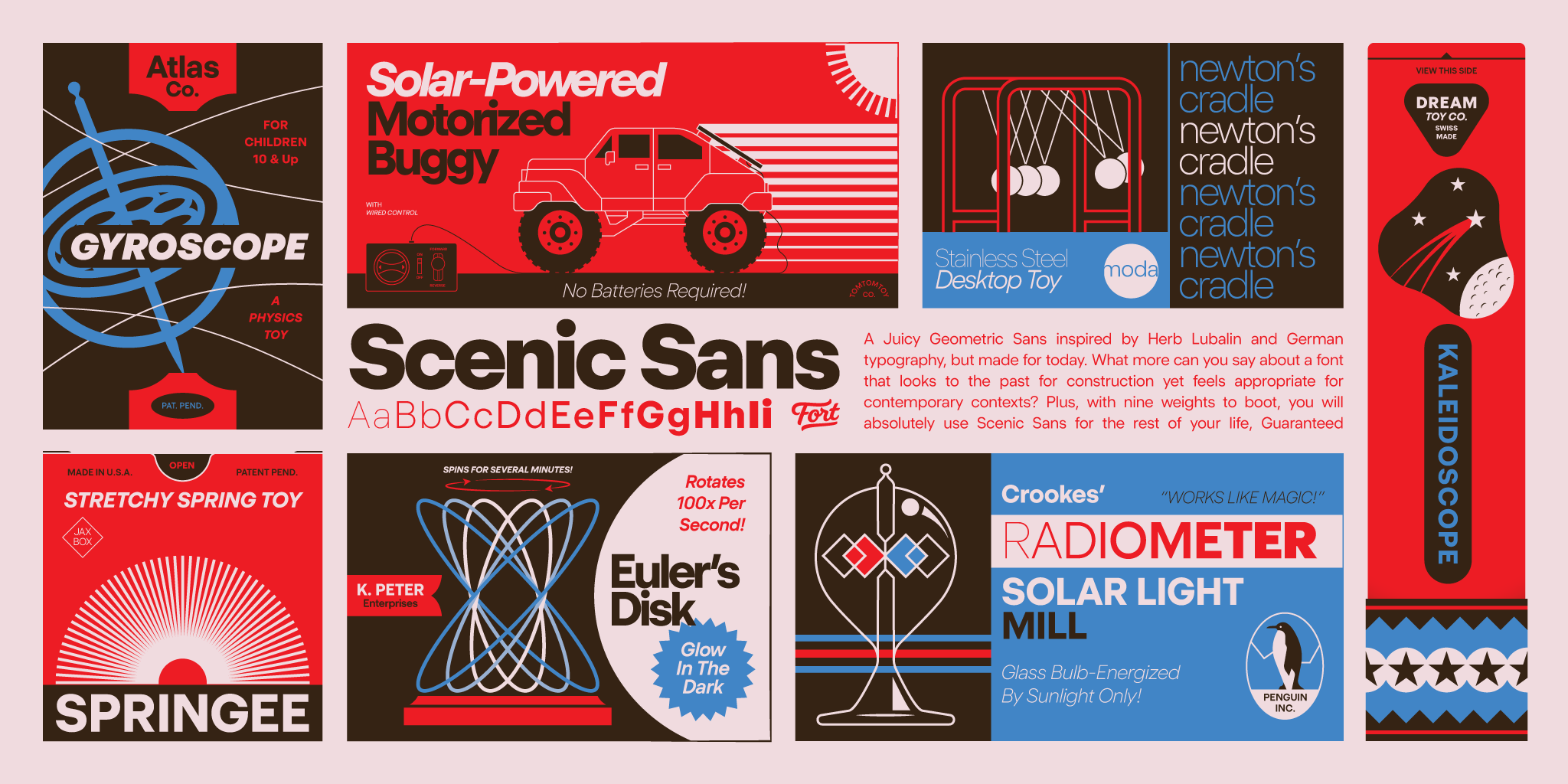 Scenic Sans draws from the optimistic clarity of American neo-grots and the rational construction of type from the continent. It’s our take on the classic, dependable sans serifs that have defined the modern era, with a design that prioritizes versatility without sacrificing its character.