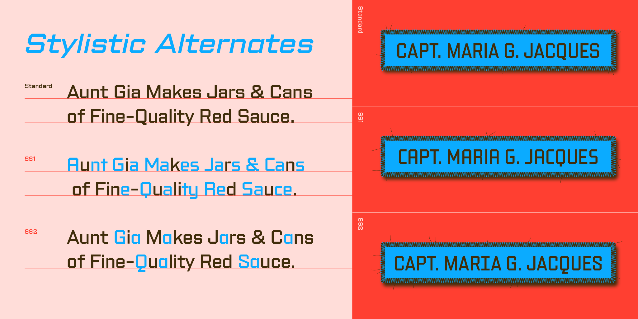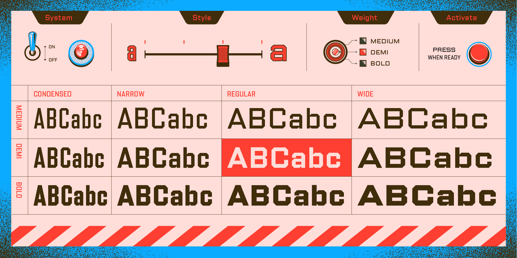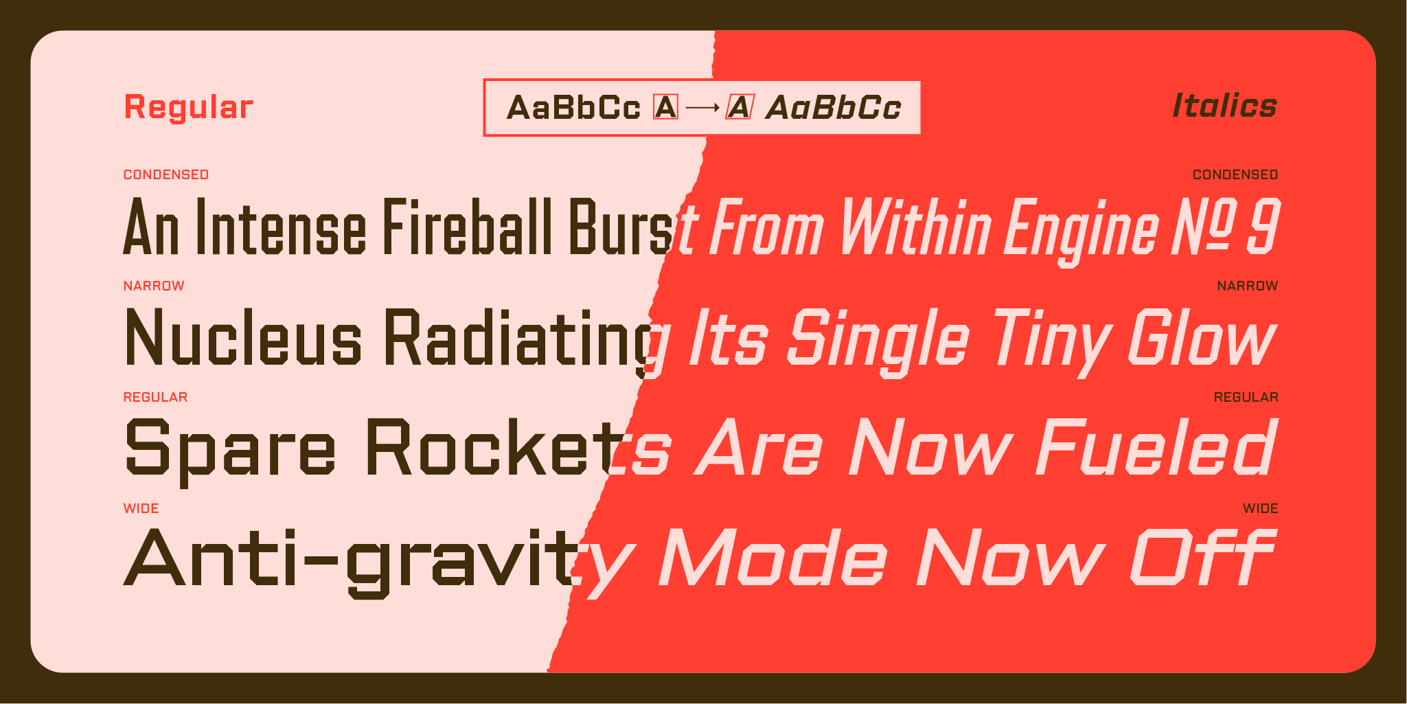 Originally inspired by the block letters found on space initiatives from the last century, Shuttleblock works to balance a refined and classic feel with its sturdy, simple forms. The weights and overall style felt like they asked for a less-is-more approach as they adapt to different design contexts. Shuttleblock comes in 4 widths, each with 3 weights, and is full of helpful alternates, custom designed symbols, and more.